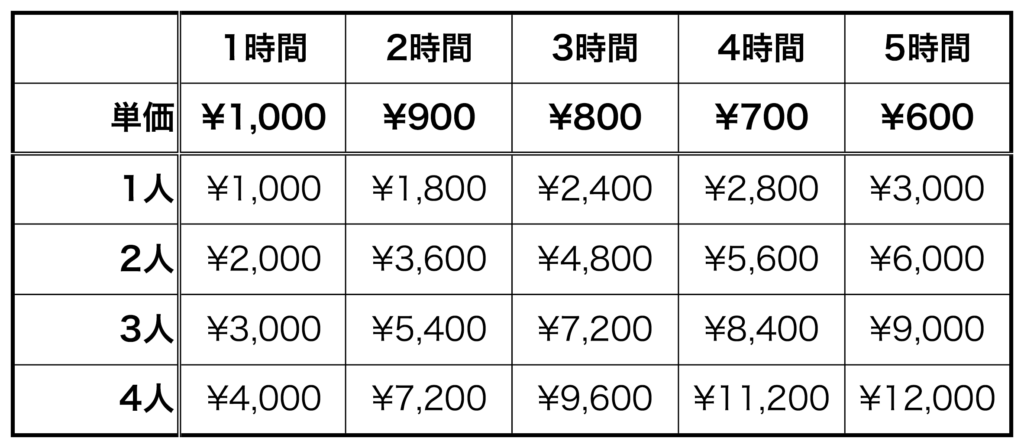 4,000円 / 1時間あたり (ソロレコーディング利用料)